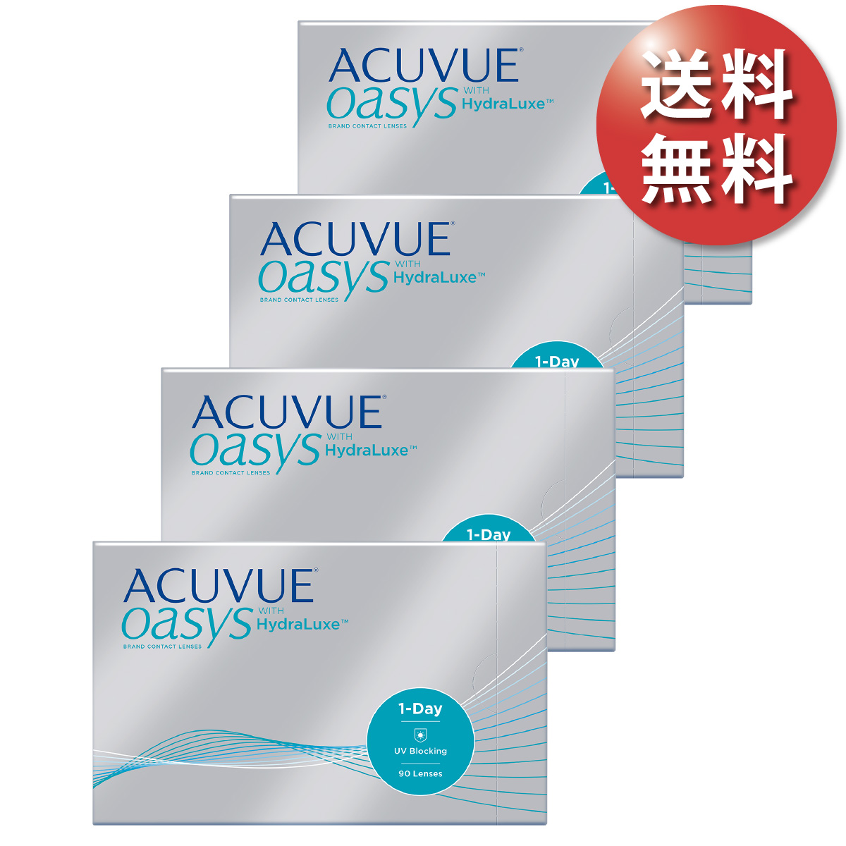 90枚入りx4箱 / 両眼6ヶ月分 / ジョンソン・エンド・ジョンソン / 1DAY / UVカット / うるおい成分 / 1日使い捨てコンタクトレンズ / ●当店では医師の処方に基づかないコンタクトレンズの使用は推奨しておりません。一部の商品では処方箋のご提示は不要ですが、目の健康と安全のため必ず医師の処方に基づいてご購入いただき、適切にご使用ください。 / ACUVUE OASYS 1-DAY WITH HydraLuxe
