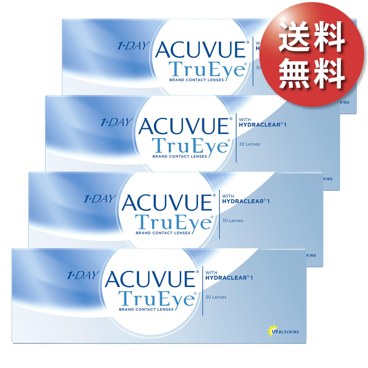 30枚入りx4箱 / 両眼2ヶ月分 / ジョンソン・エンド・ジョンソン / 1DAY / UVカット / うるおい成分 / 1日使い捨てコンタクトレンズ / メール便 / ●当店では医師の処方に基づかないコンタクトレンズの使用は推奨しておりません。一部の商品では処方箋のご提示は不要ですが、目の健康と安全のため必ず医師の処方に基づいてご購入いただき、適切にご使用ください。 / 1-DAY ACUVUE TruEye