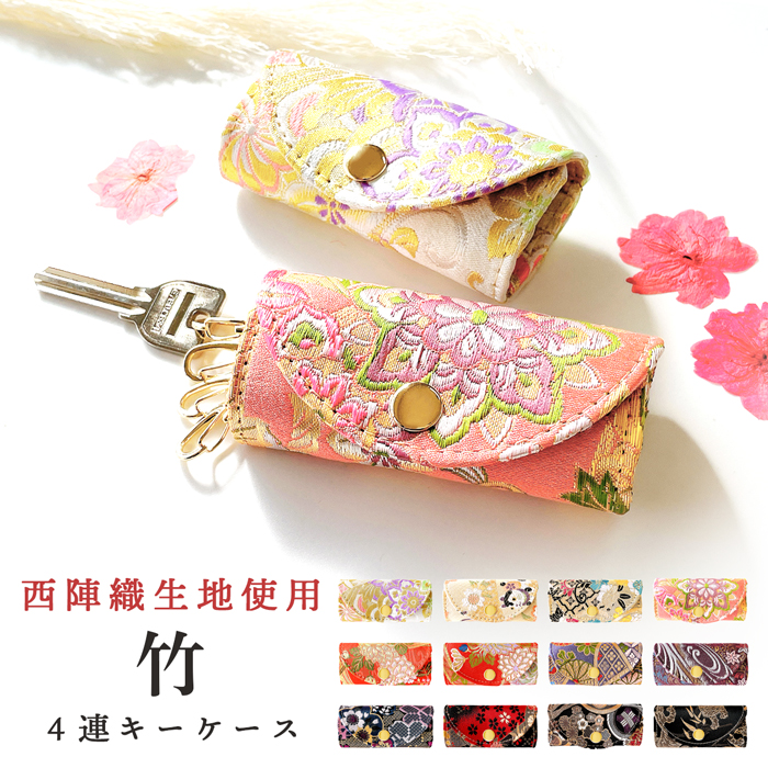 キーケース 4連 西陣織 竹 レディース スマートキー 三つ折り 鍵入れ 鍵 カギ 収納 スリム コンパクト キーホルダー 4連キーケース 金襴 着物 和柄 日本製
