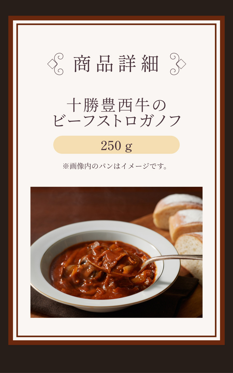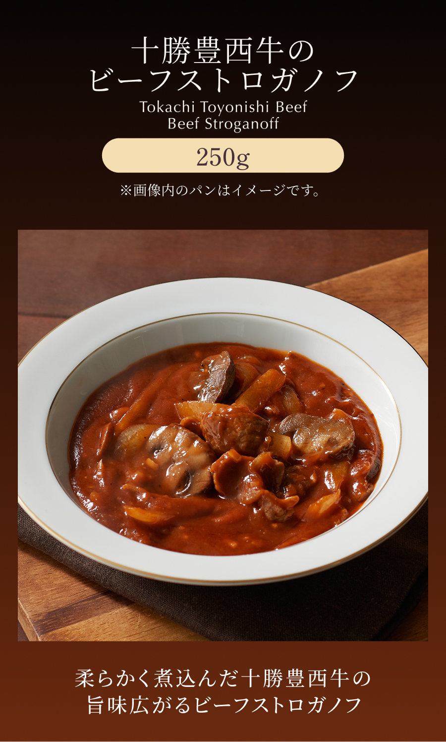 | 商品名 | 十勝豊西牛のビーフストロガノフ |