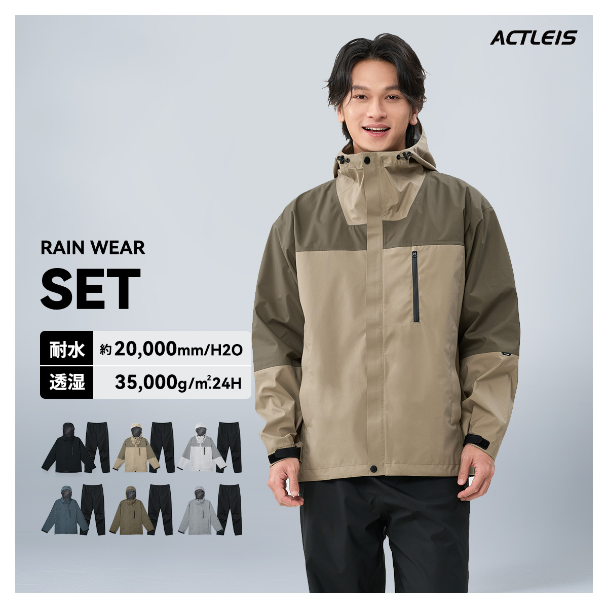 レインウェア メンズ 上下 マウンテンパーカー ウィンドブレーカー マウンテンジャケット シェルジャケット レインジャケット セット 上下セット 防水 撥水