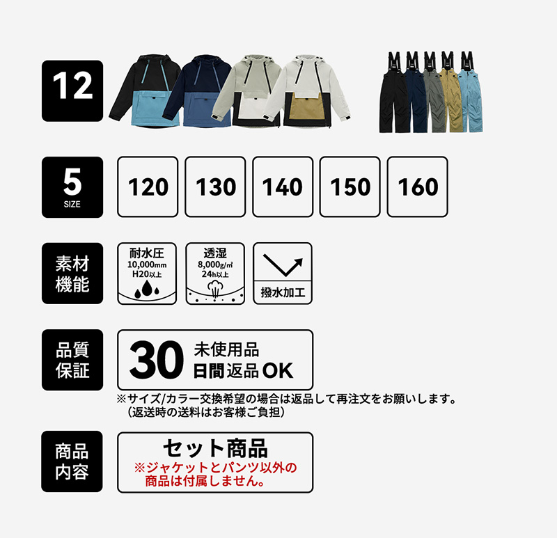 スキーウェア スノーウェア キッズ ジュニア 上下セット スノーボードウェア 男の子女の子 子供 子ども こども 120 130 140 150 160 スキー スノー ウェア 上下