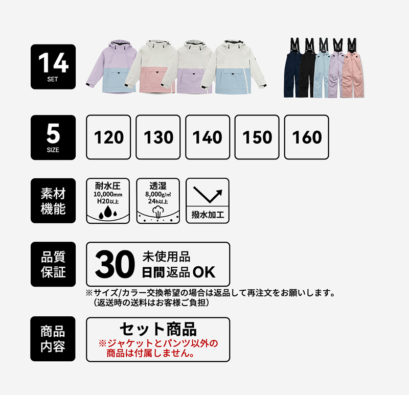 スキーウェア スノーウェア キッズ ジュニア 上下セット スノーボードウェア 男の子女の子 子供 子ども こども 120 130 140 150 160 スキー スノー ウェア 上下
