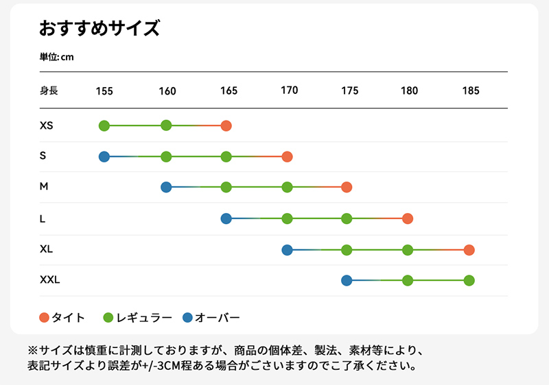 XS・S・M・L・XL・XXL
