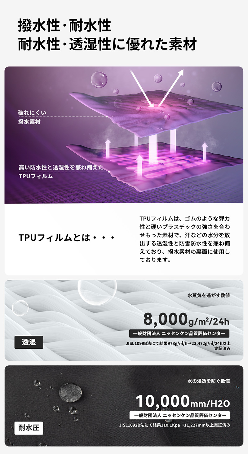 汗などの水蒸気を逃がす透湿性を兼ね備えた素材