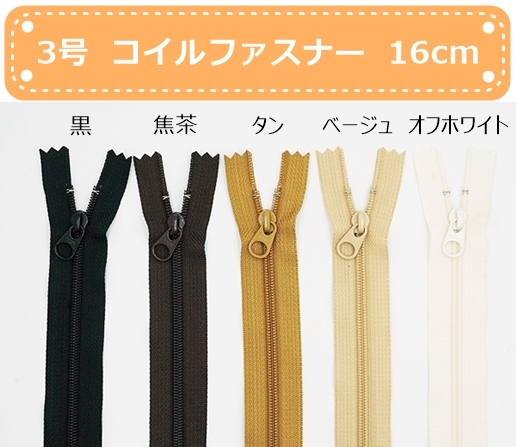 YKK 3号コイルファスナー 16cm止め