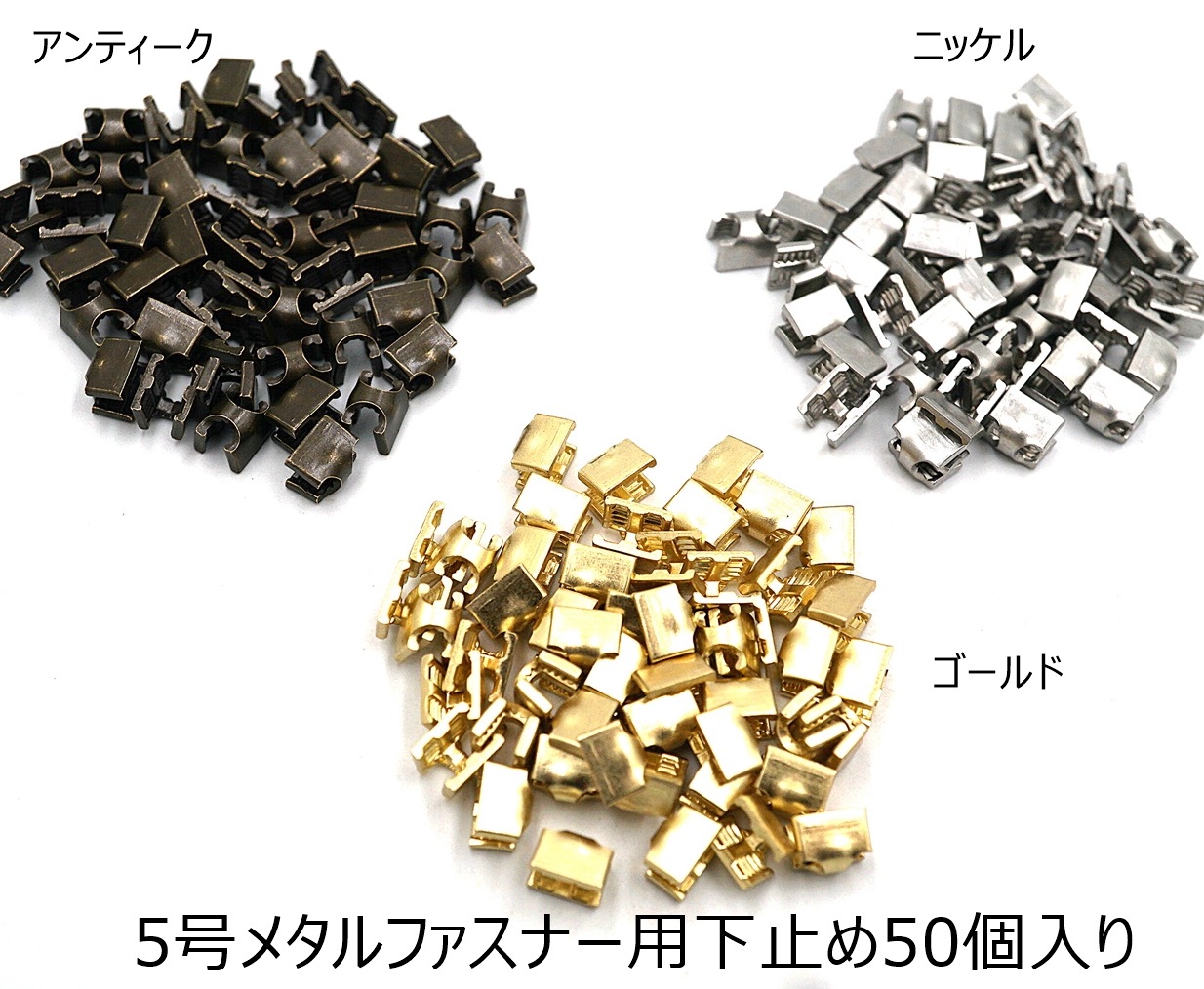 YKK 5号メタルファスナー用下止め 50個セット ニッケル・ゴールド・アンティーク 尻止め 一つ止め