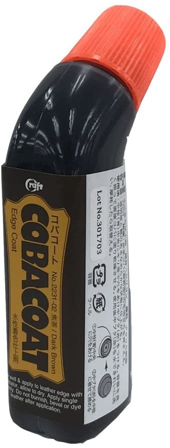 タンニン鞣し革、クロム鞣し革ともに使用できるコバの着色仕上げ剤です。