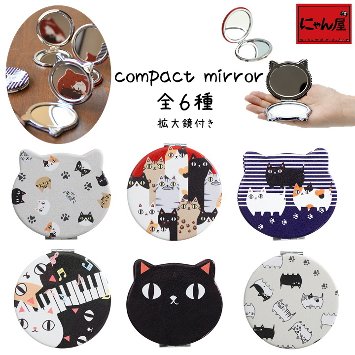 新生活 プレゼント 【メール便対応】猫グッズ 雑貨 にゃん屋 猫3兄弟 拡大鏡付き コンパクト ミラー 全6種 猫雑貨 ギフト 鏡 メイク セラミック藍