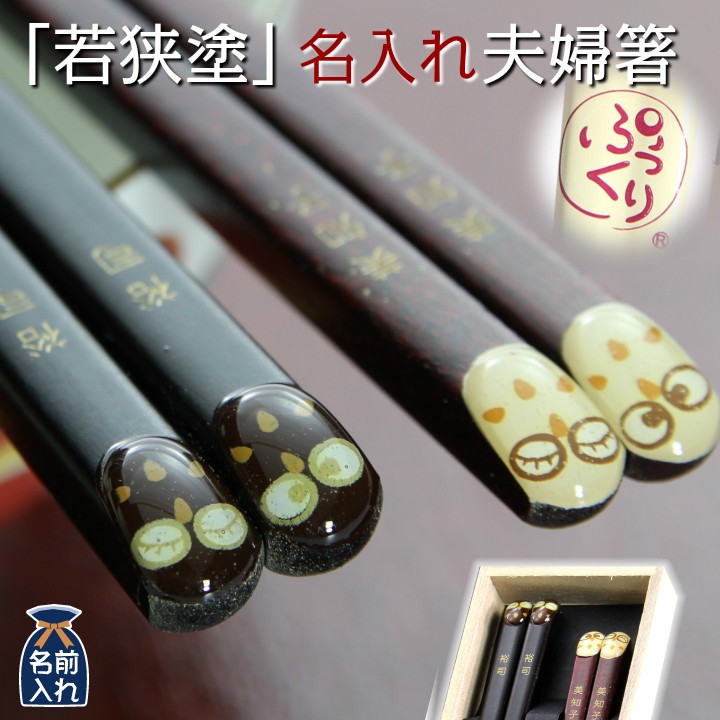 世界に一つだけのオリジナル!名入れ夫婦箸♪ プレゼントギフトに最適。伝統工芸福井県産若狭塗のペア箸です。
