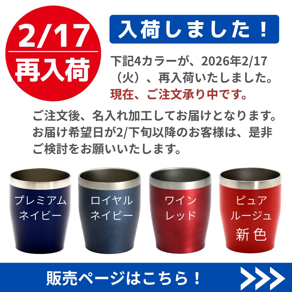 ※写真は合成です。デザインのサイズや位置、色合い等が実際とは異なる場合がございます。 ※名入れ商品の為、ご返品はお受けできません! ※限定商品のため、欠品や完売の場合がございます。 ※箱の仕様はカラー毎に異なる場合がございます。 ※製造工程上、本体表面に小傷や塗装ムラが生じる 場合がございます。機能には問題ございません。 ※お客様がご利用のモニターの設定及び特性により、実際の商品と比較し色味に若干の誤差が生じる場合があります。また、同じカラーでも入荷時期や生産ロットにより色味が異なる場合がございます。 ※稀に本体を振るとカラカラという音がする場合があります。 こちらは、真空二重構造の製造工程上によるもので不良等ではありません。 予めご確認ご了承下さい。