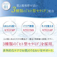 【肌と親和性が高い3種類の「ヒト型セラミド」配合!】「セラミド」は水分を抱え込む働きがあり、もともと人の肌に存在するため肌との親和性が高く、潤いをキープするためには非常に大切な役割を持ちます。しかし、年齢を重ねるとセラミドは減少し、お肌の感想やバリア機能の低下を引き起こすことも…「なめらかな肌へセラミドNP」「バリア機能セラミドNG」「キメを整えるセラミドAP」の3種類のセラミドを採用し、多角的なケアでお肌の潤いをサポート。