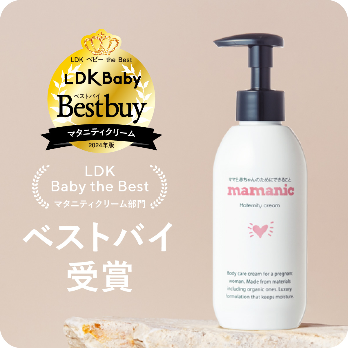 【LDKbabyベストバイ受賞の「ママニック マタニティクリーム 120g」がリニューアル!内容量が120g→200gへ大幅アップ】シリーズ累計800,000個突破!(※)。40年以上のスキンケア研究から誕生したママニックの保湿ケアクリームです。配合成分がグレードアップし、保湿のみでは足りない妊婦さんの肌トラブルに、「保湿+弾力・柔軟性」の成分でお肌を整えます。※2022年11月実績(自社調査)