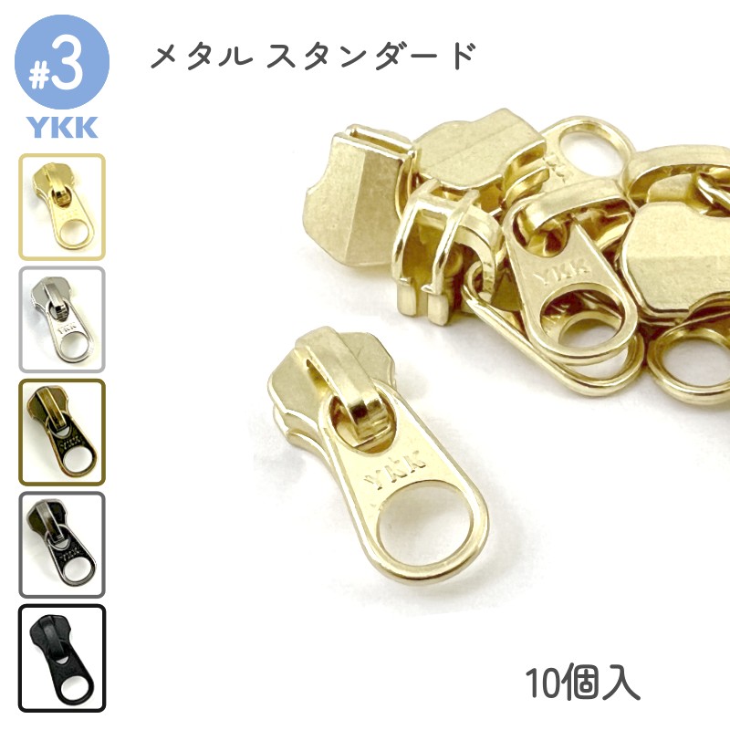 YKK スライダー DFW 3号 単品10個入 メタルファスナー スタンダード用 ゴールド ニッケル アンティークゴールド アンティークシルバー ブラック