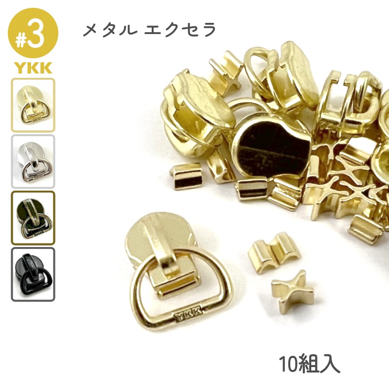 YKK スライダー DFD 3号 上下止セット 10組入 メタルファスナー エクセラ用 高級ゴールド 高級ニッケル アンティークブラス 艶ブラック