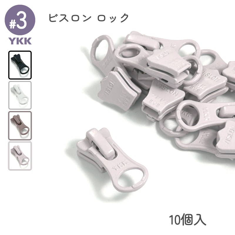 YKK ロックスライダー DALH 3号 単品10個入 ビスロン用 ブラック ホワイト グレージュ ライトグレーモーヴ 裁縫 洋裁 手芸 ハンドメイド 補修
