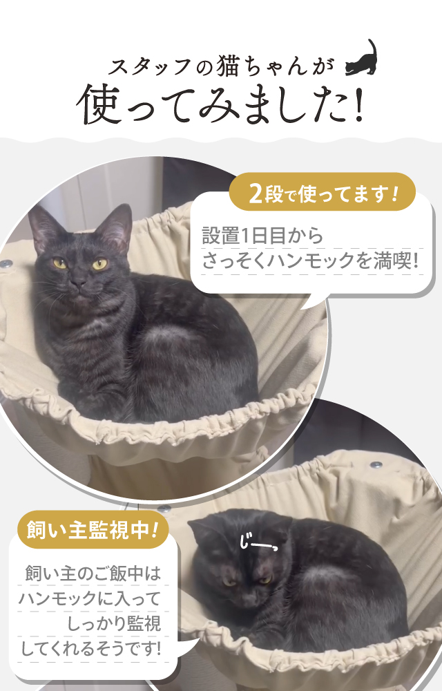 キャットタワー 猫タワー 猫の3段ベッド 据え置き スリム ハンモック 付き 子猫 シニア 運動不足 猫ちゃん 猫 ベッド ハンモックタワー