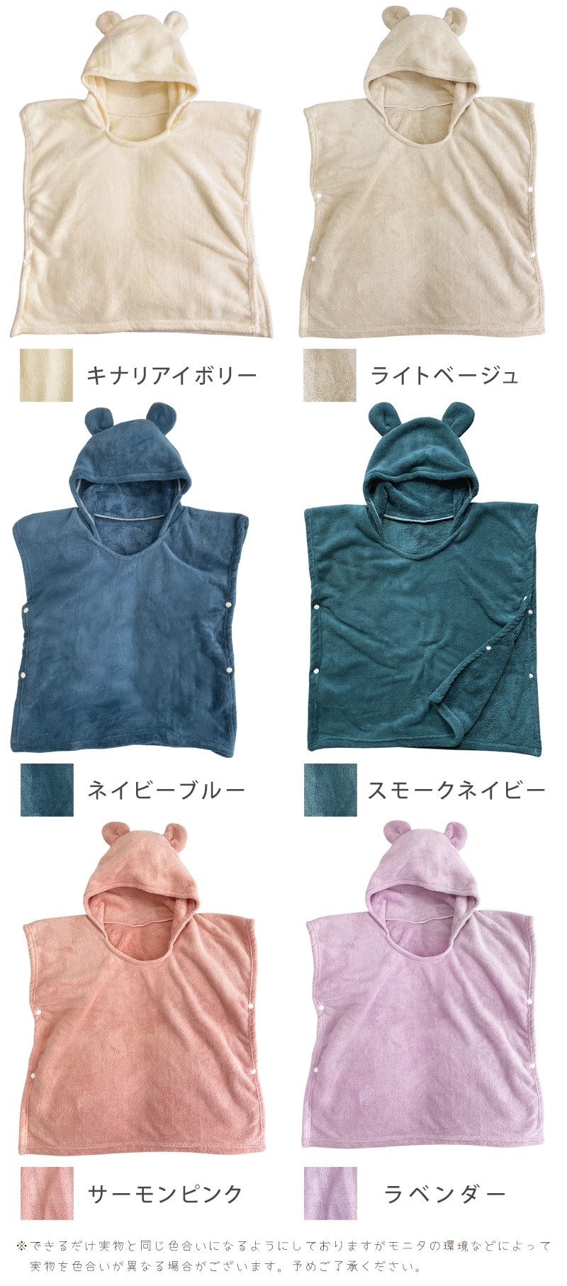 ●タオル生地の特性上、多少毛羽が落ちたり、色移り、色落ちすることがあります。