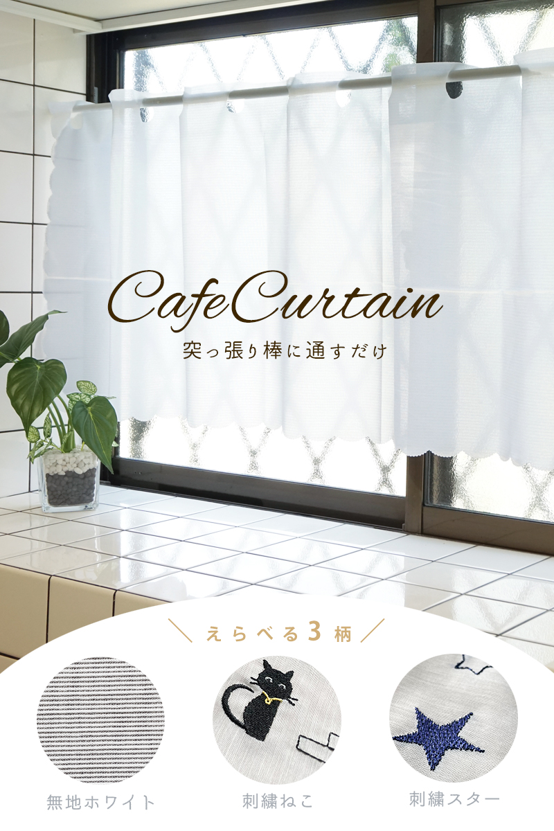 カフェカーテン 窓 丈 目隠し 突っ張り棒 仕切り 刺繍 星柄 無地 シンプル 白 ホワイト ナチュラル 100×45 75 145×45 75 カーテン ネコポス便