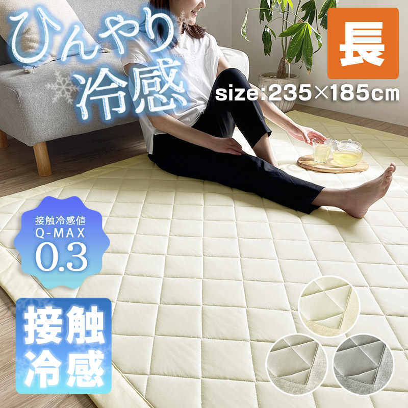 接触冷感ラグマット ひんやりマット ひんやりラグ さらさら 涼感 キルティング 滑り止め 正方形 長方形 カーペット ヘム アイボリー ベージュ グレー