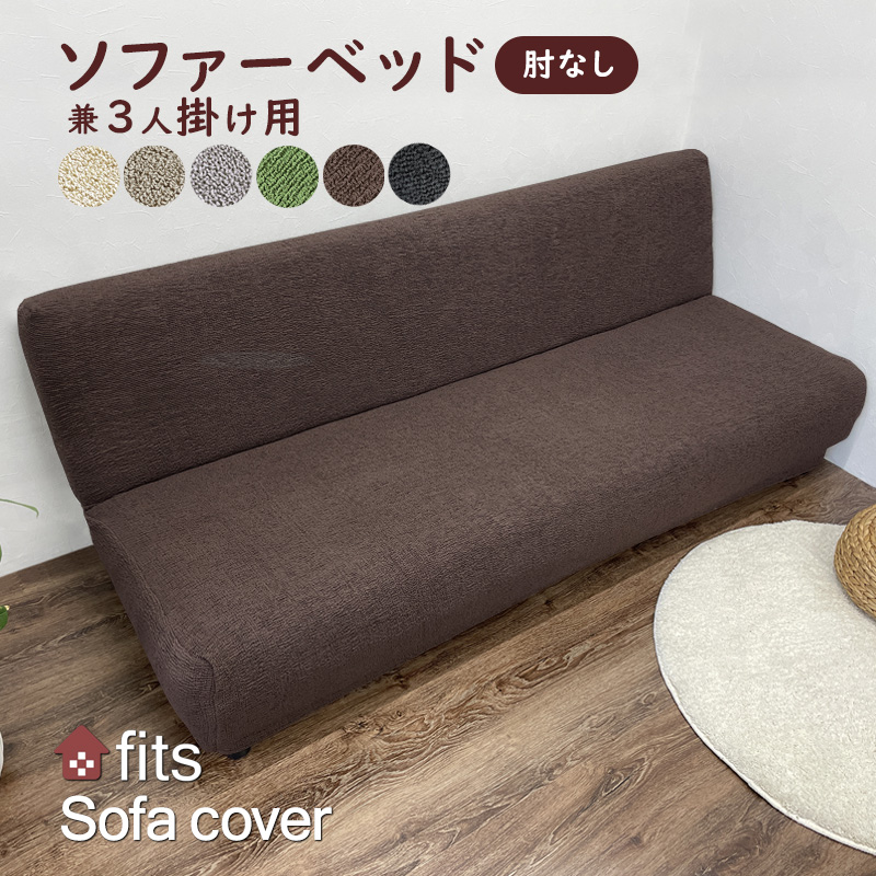 ソファーベッドカバー ソファーベッド用 肘無し3人掛け 肘無 肘掛け無し 肘掛けなし 肘掛無し 肘掛なし 肘無 肘無し 肘なし フィットタイプ フィットカバー グレー グリーン ブラック モノトーン ナチュラル おしゃれ 丸洗い アームなし シンプル 無地 模様替え 新生活 オールシーズン 人気 キズ防止 汚れ防止 ソファー保護