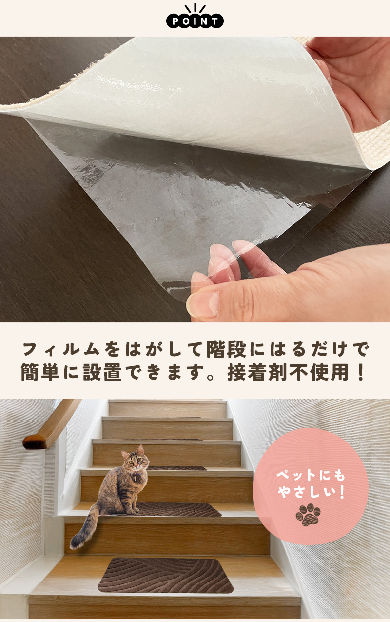 SALE価格! 階段マット 滑り止め 犬 おしゃれ 45×20cm 13枚 階段 滑り止め 防音 ペット 滑り止めマット 厚手 転落防止 転倒 すべり止め 赤ちゃん 防音マット