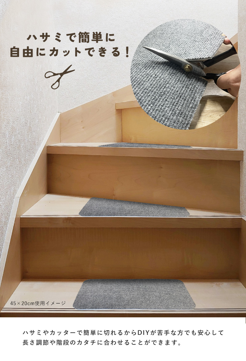 ・階段の奥行きスペースに合わない場合は、ハサミでカットしてください。