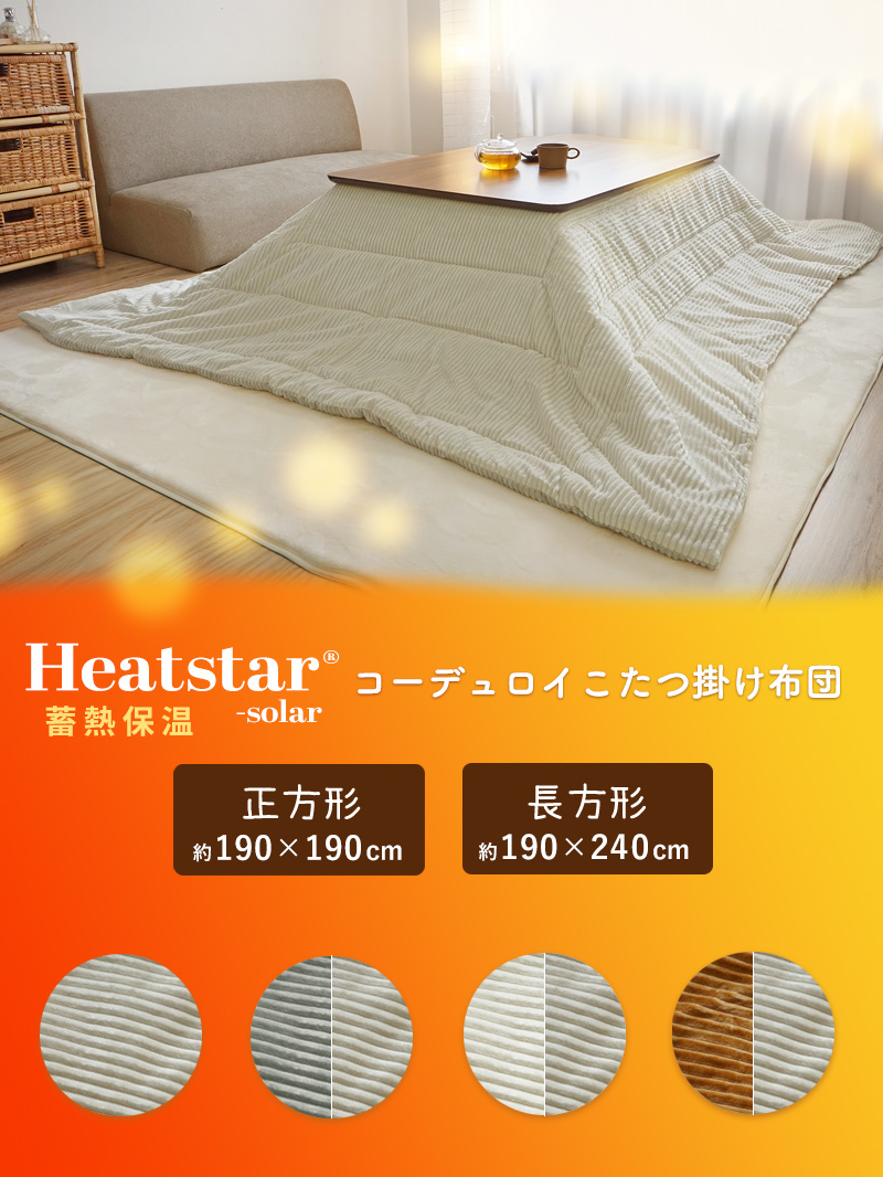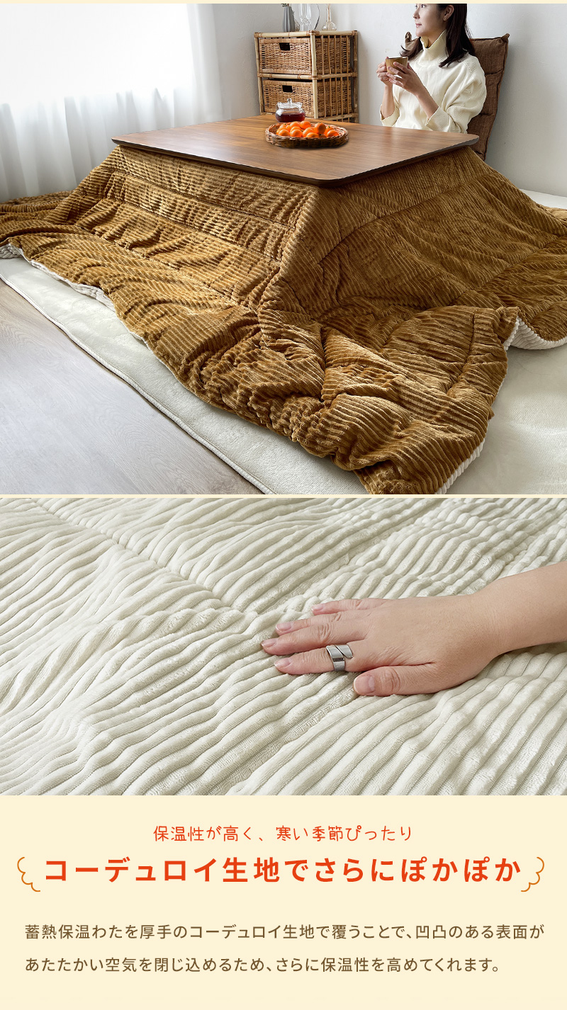 こたつ布団 蓄熱 保温 発熱 長方形 リバーシブル 両面 洗える 北欧 軽い おしゃれ コタツ布団 コーデュロイ 190×240cm こたつ掛け布団 コーデュロイ生地