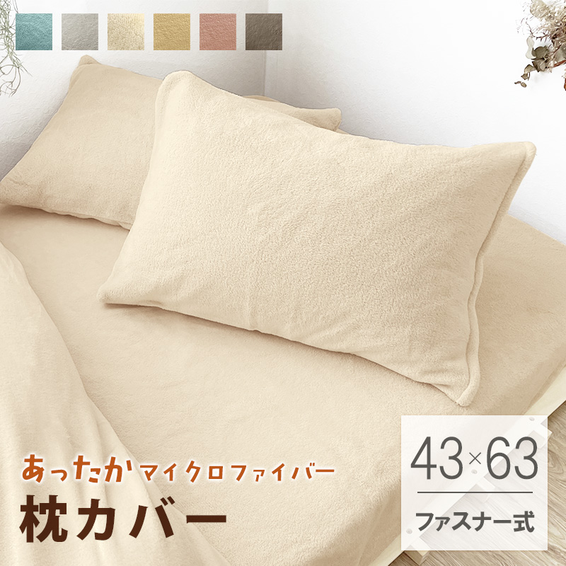 枕カバー 暖かい マイクロファイバー 43×63cm あったか ファスナー ピローケース 無地 シンプル おしゃれ インテリア 全開ファスナー 43 63 冬 送料無料