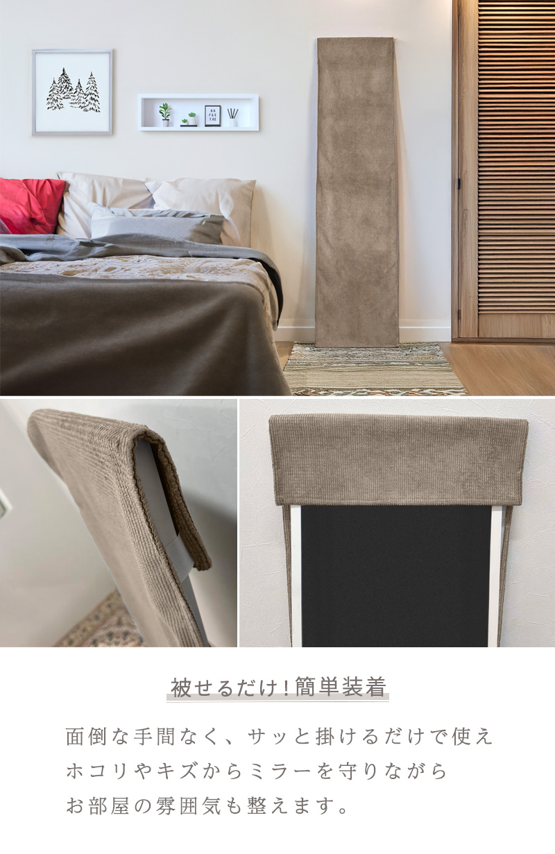ミラーカバー おしゃれ 専用カバー ミラー用カバー ドビー 予備 北欧 北欧風 無地 織り 和風 洋風 激安 人気 厚手 鏡用カバー ゴム付き 全身 風水