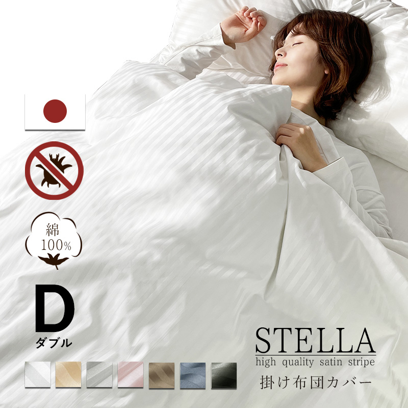 掛け布団カバー ダブル 綿 100% 日本製 高級 ホテル 高密度 おしゃれ 防ダニ サテン スナップボタン 艶 D シルク のような艶感 ストライプ