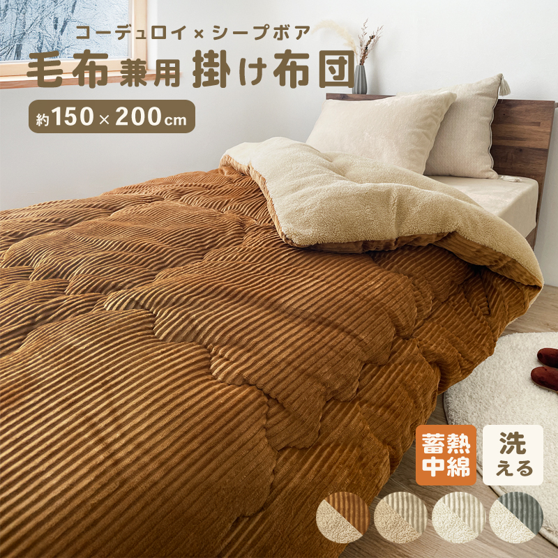 コーデュロイ シープボア 毛布兼用掛け布団 シングル 150×200 厚手 洗える リバーシブル 三層構造 蓄熱 保温 秋冬用 防寒 あったか 暖か 北欧 oeko-tex認証