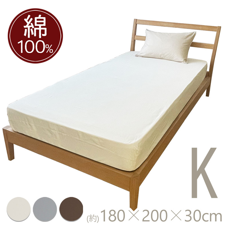 BOXシーツ キング K 綿100% マットレスカバー ベッドカバー ボックスシーツ ツイル 180×200×30cm 韓国 インテリア