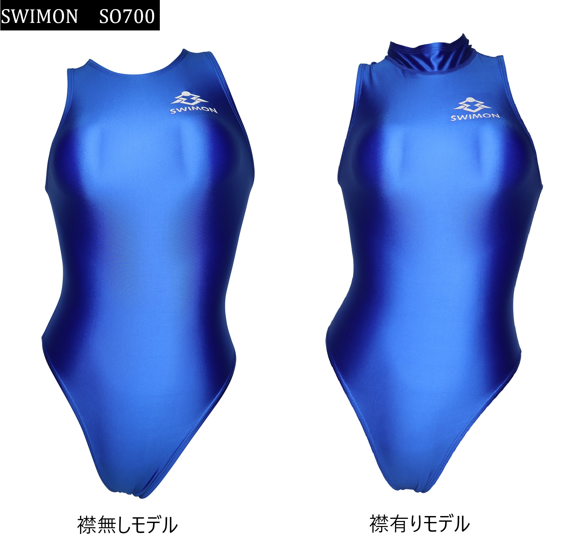 【SWIMON】 競泳水着 レディース ガールズ 700 バックジップ 水球モデル 無地 青 光沢 メタリック N1 ハイカット ウォーターポロ ハイレグ