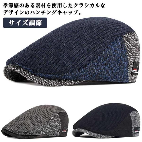 ハンチング帽子 おしゃれ 防寒 ハンチング帽子 配色 メンズ ニット 異素材 ゴルフ キャップ 暖かい 切り替え レディース アウトドア サイズ調節