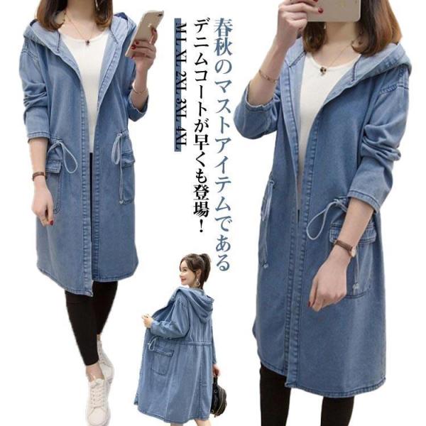 トレンチコート フード付き 春 スプリングコート きれいめ レディース キレイめ アウター ロングコート デニムワンピース デニムコート 長袖 ロング