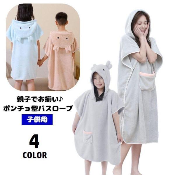 バスローブ バスポンチョ 半袖 キッズ 子供用 女の子 男の子 親子ペア フリース フード付き ポケット付き スリット入り 親子でお揃い リンクコーデ