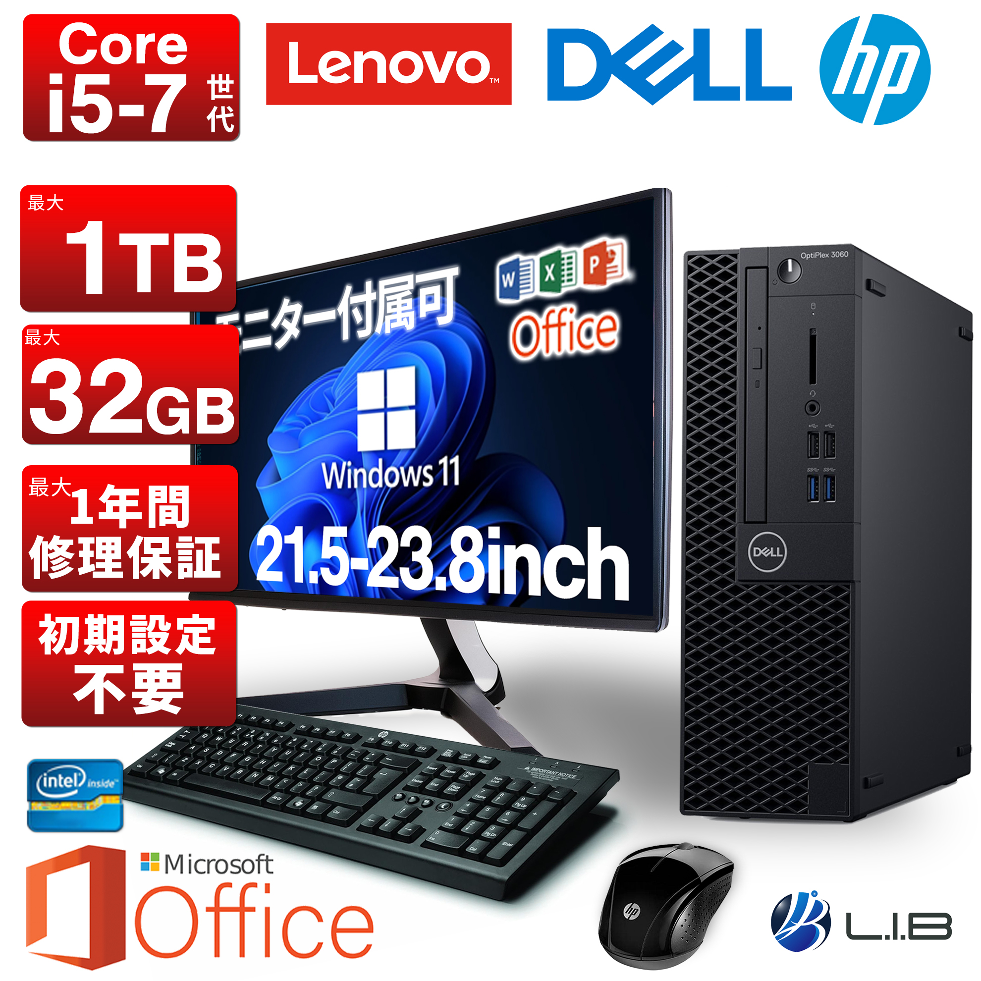 モニター(中古):21.5 〜 23.8インチ(オプション選択にて「不要」の場合は付属しません)