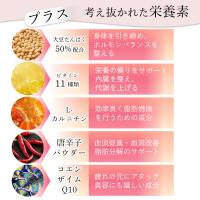 | 原材料名 | 大豆たんばく粉(国内製造、甜菜糖、乳等を主要原料とする食品(植物油脂、デキストリン、脱脂粉乳、乳糖、生クリーム)、あまおう苺パウダー(乳糖、いちご、デキストリン)、ドロマイト、L-カルニチンフマル酸塩、コエンザイムQ10、トウガラシパクダー/香料、酸味料、甘味料(ステビア)、カゼインNa、乳化剤、pH調整剤、着色料(クチナン、紅麹).V.C、糊料(ペクチン)、V.E、ナイアシン、ピロリン酸鉄、バントテン酸CaV.B1、V.B6.V.B2.VA、業酸、V.D、V.B12.(一部に乳成分・大豆を含む) |