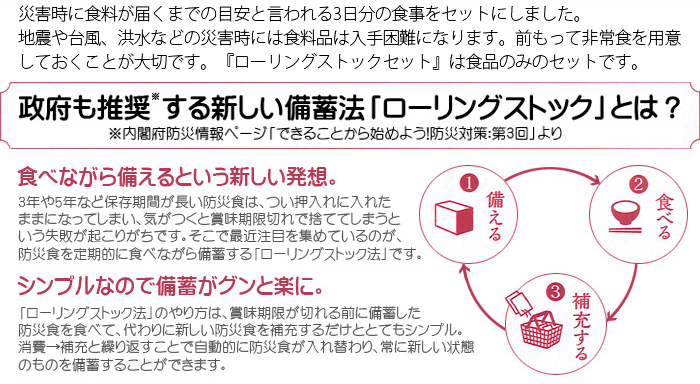 「ローリングストックセット」は、食品だけを追加・補充したい方におすすめです。