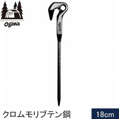 高硬度、高強度なクロムモリブデン鋼を使用した強靭な鍛造ペグは、様々な地面で活躍します。【特徴】・硬度が高く、強度もあるクロムモリブデン鋼を使用しています。・張綱を固定しやすく、抜けにくい形状となっています。・ハンマーの力が加わりやす上部形状、そしてペグ抜きしやすいフック形状となっています。・フック部には丸穴があり、ペグ抜きに利用したり、ロープ、カラビナなどつけることができます。・さまざまな状態の地面にご使用できます。・国内生産(新潟・燕三条)にこだわった安心、高品質鍛造ペグとなります。・本体に「ogawa」ロゴが刻まれています。※クロムモリブデン鋼とは・・・鉄にクロムとモリブデンを添加した合金鋼で、硬度も高く強度もあり、自転車のフレームなどに使用されます。長さ 18cm重量 約100g色 黒素材 クロムモリブテン鋼生産地 新潟県 燕三条【注意事項】※画面上と実物では多少色具合が異なって見える場合もございます。ご了承ください。