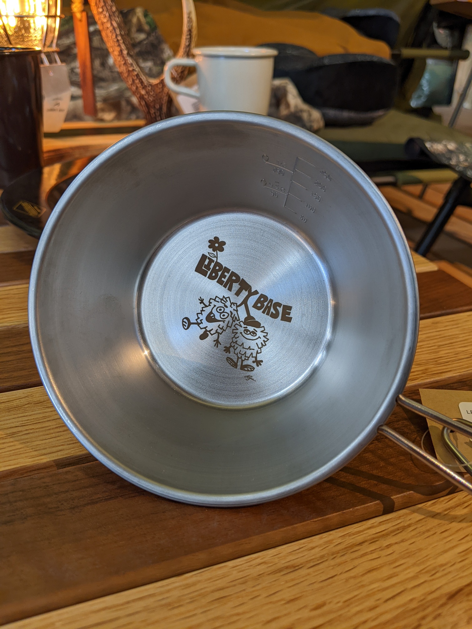 茅ケ崎出身のデザイナーRYU AMBE氏とLiberty baseのオリジナルコラボデザインを刻印したオリジナルシェラカップが誕生しました!まつぼっくりの兄弟パニーとコニーのデザインとなります。シェラカップ本体は金物の町として知られる新潟燕三条で製作。炒め物や炊飯などクッカーとしてはもちろん、そのまま食器としても使えるアウトドアには欠かせないシェラカップです。便利な 50 刻みの目盛りと炊飯時に使用できる目盛りつき。仕様 サイズ : W122 × H45 ×D122素材 : ステンレス注意事項 ※モニターの発色によって色が異なって見える場合がございます。