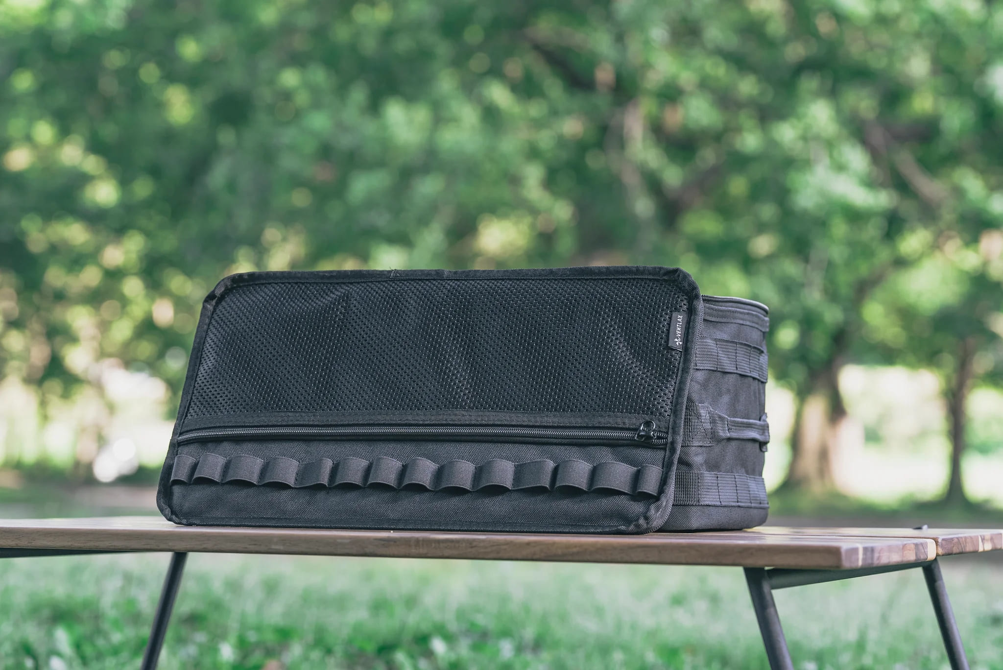 着脱可能な仕切り付きなので散らかりがちなキャンプの小物をスッキリと収納できます。