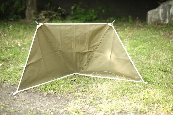 一般的な風防は、タープと同じ要領で設営するため、シワや弛みがでないように設営するにはコツが必要ですが、この風防は下記の手順通りに設営すれば、誰が設営しても同じように設営が可能です。