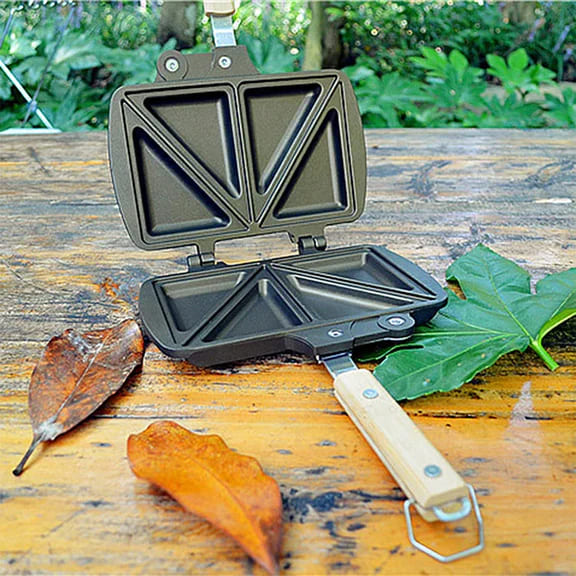 ハンドルが折りたためる直火式ホットサンドメーカー。