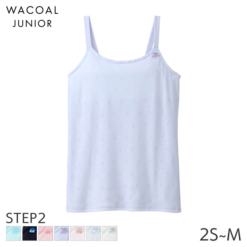 ■サイズ 2S(トップバスト65〜73cm 身長140対応) S(トップバスト72〜80cm 身長150対応) M(トップバスト79〜87cm 身長160対応) ■主素材 綿70% ポリエステル30% ■ワイヤー 無 ■ストラップ 取替不可 取外し不可 長さ調整不可 ■袖丈 ノースリーブ ■キーワード ブラトップ ブラキャミソール ファーストブラ はじめてブラ ブラデビュー ワンポイント シンプル ジュニアブラ ワイヤーなし 胸あて付き ティーン 小中学生 ガールズインナー GIRLS 女の子 子供用ブラジャー ふんわり なめらか 綿混 吸汗速乾 さくらんぼ かわいい ドット柄 フェアリーティアラ FAIRYTIARA ワコール ssamt CFX230ペア CZQ530ペア