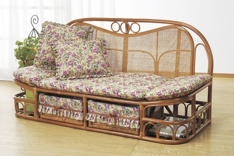 収納ソファー140幅 ラタンハイバックカウチソファ クッション2個付 天然籐 安い