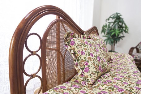 同柄クッション2個付きなので、枕にしたり脚部を高くしたりと便利な天然籐ハイバックカウチソファ。