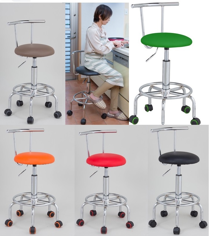 座りながら高さ調節可能のガス圧昇降式回転チェア