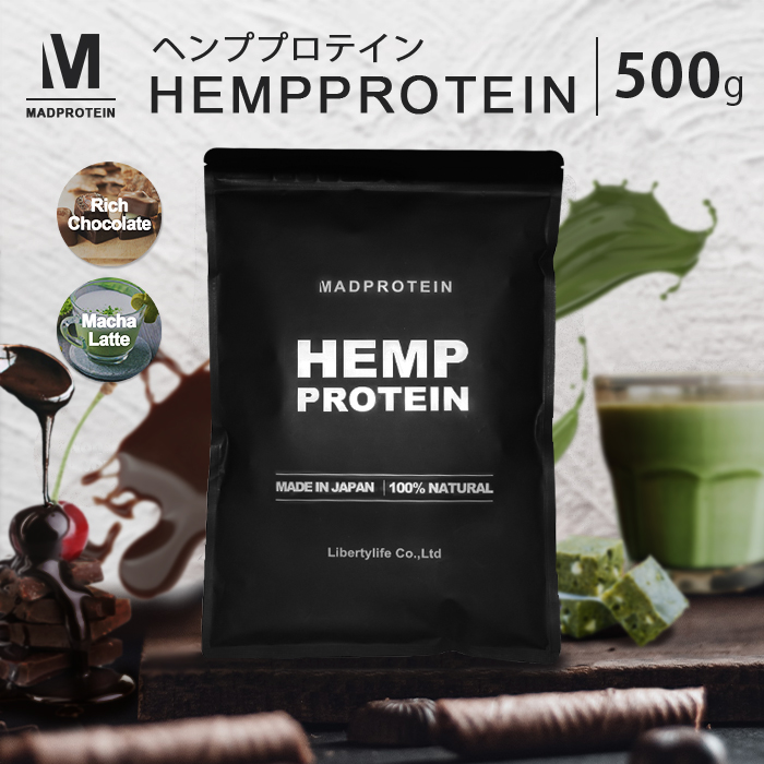ヘンププロテイン 500g ステビア100%使用 選べる2種類 フレーバー 国内加工 麻の実プロテイン【MADPROTEIN】 マッドプロテイン
